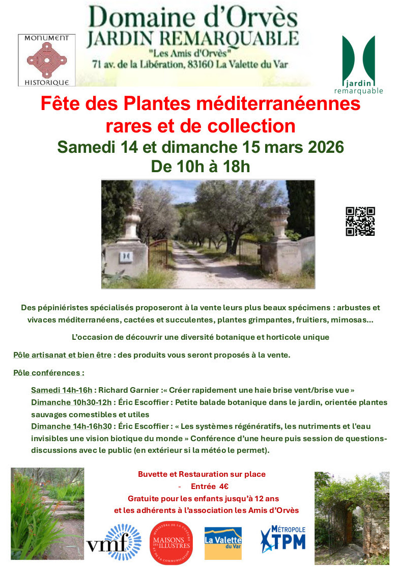 Ces activités ont lieu dans le cadre de la Fête des Plantes méditerranéennes rares et de collection, organisée par l'association Les amis du Domaine d'Orvès les samedi 14 et dimanche 15 mars au Domaine d'Orvès.